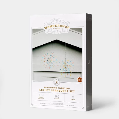 For a striking alternative to traditional star-shaped lights, you’ll love decorating with the 12 inch 2-Pack of Christmas LED Starburst Novelty 140 Lights Multicolor from Wondershop™. This novelty light set comes with two large starburst-shaped lights, each with a silvery finish and 12-inch diameter for a standout decoration even during the day. The decorative starburst lights make a particularly eye-catching display when turned on at night or in a dark room — each is covered with tiny LED lights in multiple colors that twinkle for a bright, festive look. The LED bulbs ensure energy-efficient use, and the starbursts even have a timer so you don’t have to worry about them being on for too long. The lights are suitable for both indoor and outdoor use, and they run on batteries so you aren’t limited to displaying them near an outlet.