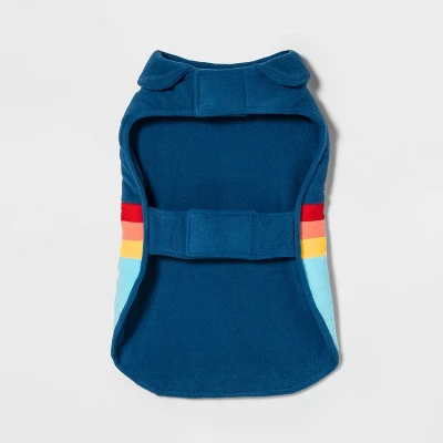 Keep your pet ready for a fun-filled day outdoors with the Gingerbread Playhouse Blue with Stripes Cat and Dog Fleece Vest from Wondershop™. This blue vest for pets features colorful stripes for eye-catching appeal you all will love. The hook-and-loop closure makes the vest easy to wear and remove, and it can be hand washed for easy cleanup. Designed with fleece, this striped pet vest helps keep them warm.