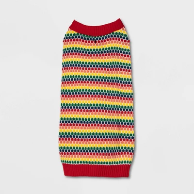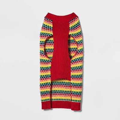 Beautifully dress up your pet with the Gingerbread Playhouse Cat and Dog Sweater from Wondershop™. This pet sweater features a colorful knitted pattern for an attractive look. Made with a pullover style, this knitted pet sweater helps keep them warm and comfortable, and is easy to dress up and change.